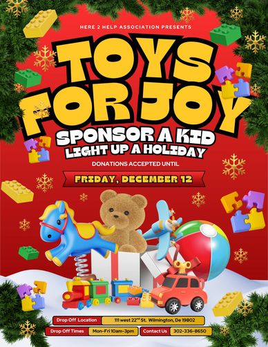 If you are in need of toys this holiday season, please register for our Toys for Joy Event. Registration will be open September 1, 2025. (Pickup location will be given at time of registration) Registrants must live in New Castle County, Delaware.